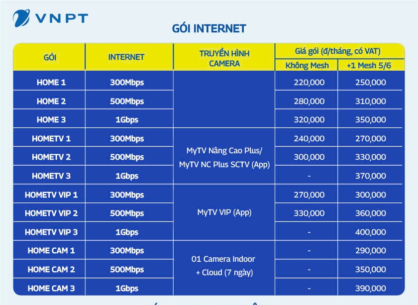 ## Gói cước áp dụng tại: